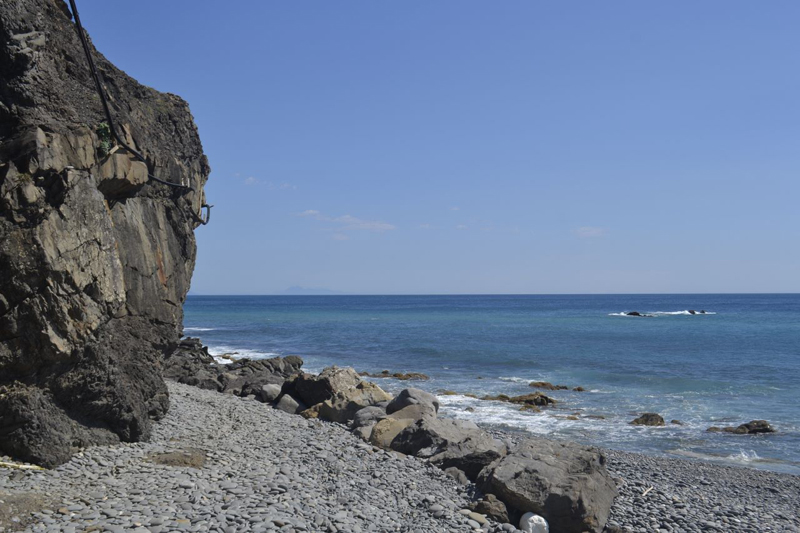 ( 進入阿塱壹,穿越了2500萬年的地質步道,遠方可見台東聖山—-都蘭山)