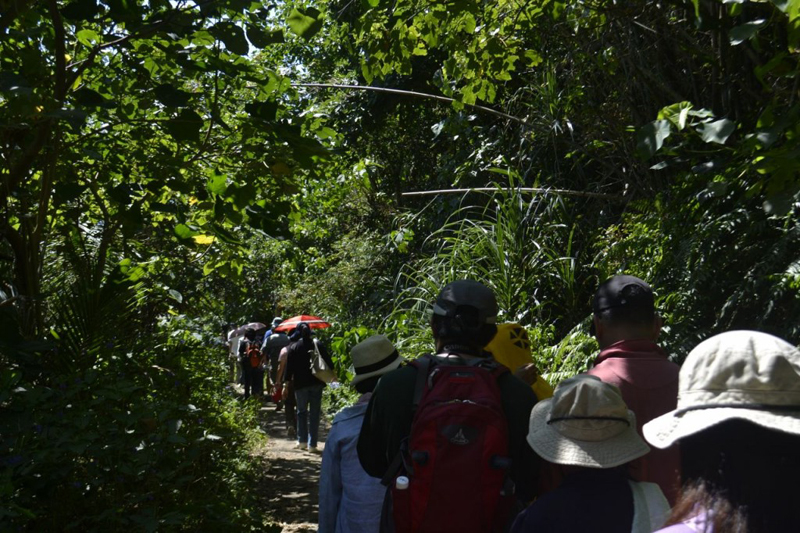(一行人穿梭在林蔭之間,聽得見鳥叫與蟲聲。)