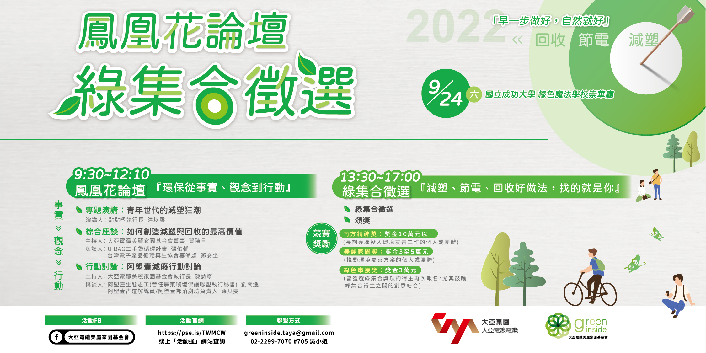 - 鳳凰花論壇:邀請國內外知名的講師來對外分享環保相關議題