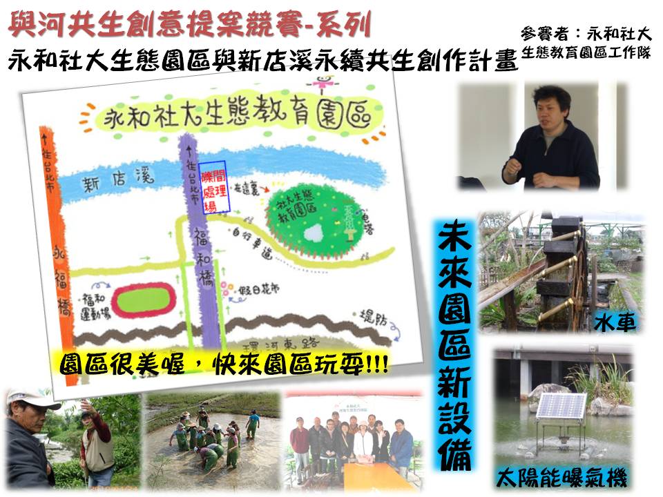永和社區大學成立於1999年,亟思以社區培力開展出各種公民參與的可能性, 2004年社大藉由原有中正橋下構築溼地的經驗,同樣在秀朗抽水站堤外高灘地打造富含生物多樣性的溼地生態園區。2005年正式成立「永和社區大學生態教育園區工作隊」,2010年提出公民版「生態雙和白皮書」、組成「生態雙和聯盟」、舉辦「生態雙和願景論壇」等,社大這11年來約有6萬人次參與課程與社區實踐行動。對於園區的未來,社大還有三位生力軍想要招募,分別是太陽能曝氣機、水車、水質觀測箱,有了這些裝備,園區的生物就會更健康了。